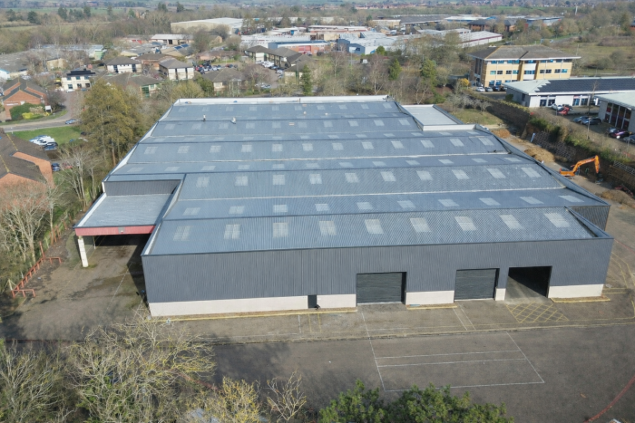 Single storey detached steel portal frame warehouse, with additional internal and external offices.